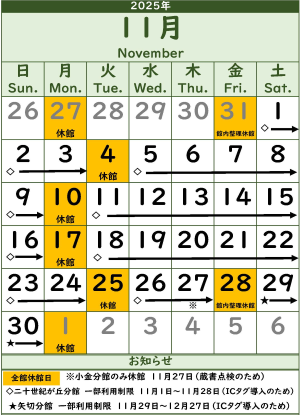 開館日カレンダーを見ると、休館日が目立つように思えます。